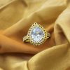 Bu özel yüzük, en yüksek kalite standartlarına uygun olarak üretilmiştir. Zirkon taşlarının özenle yerleştirildiği çift halkalı tasarım, üstün işçiliğin bir göstergesidir.