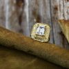Orya Kuyumculuk’un bu eşsiz tasarımı, beyaz altının zarafeti ile dikdörtgen baget zirkon taşlarının göz alıcı ışıltısını bir araya getiriyor. Şıklığın ve asaletin mükemmel birleşimi olan bu yüzük, her anınıza değer katacak.